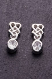 Silver & Rose Gold Trinity Knot Stud Earrings with Sparkling Stone